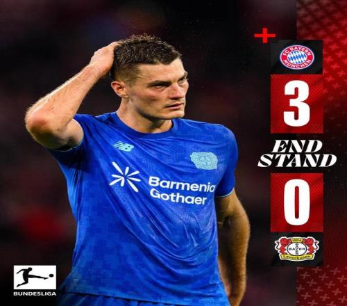 德甲第9轮,勒沃库森客场0-3不敌拜仁慕尼黑,德甲客场连续37场不败纪录遭终结。