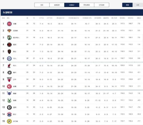 11-15名:快船(15)、猛龙(11)、湖人(12)、76人(14)、热火(13)!
